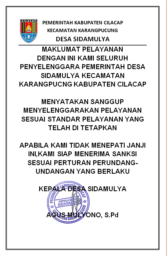Kepada masyarakat Desa Sidamulya sekalian yang saya banggakan. Pada kesempatan yang berbahagia ini, kiranya tiada kata – kata yang patut untuk kita ucapkan terlebih dahulu melainkan puji syukur yang sedalam – dalamnya, atas rahmat dan karunia Allah SWT sehingga pembuatan website Desa Sidamulya dapat terlaksana dengan baik.